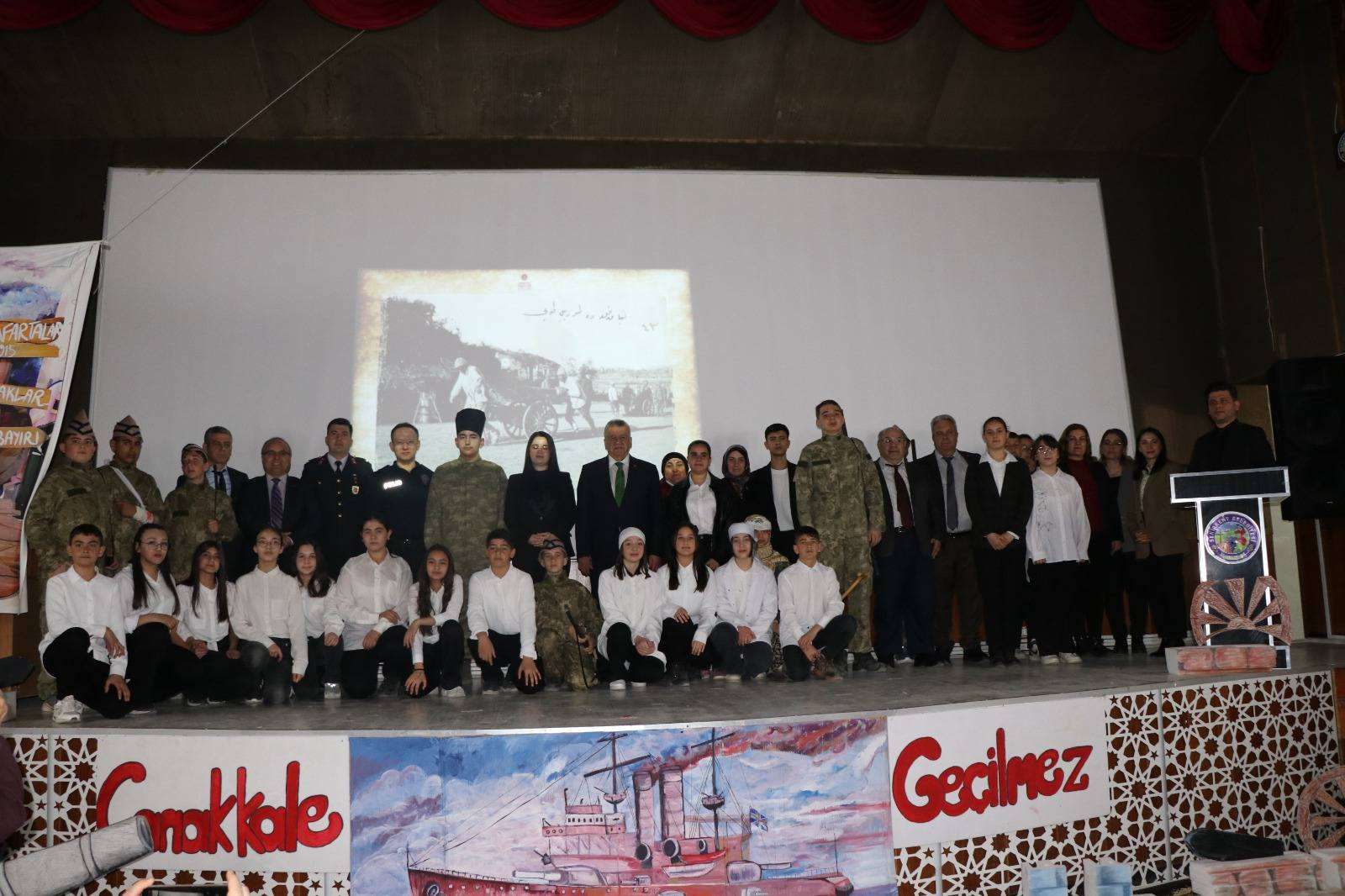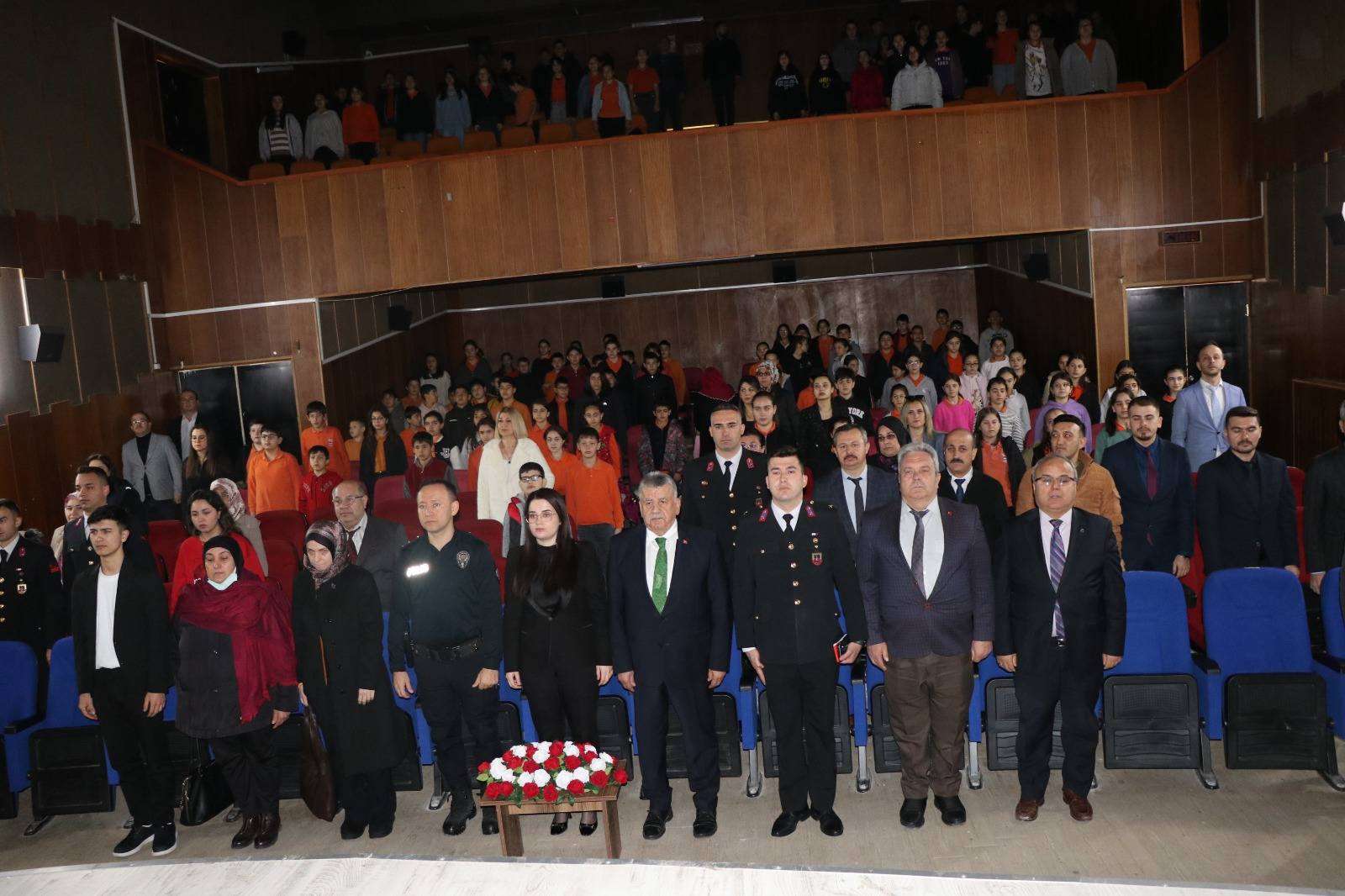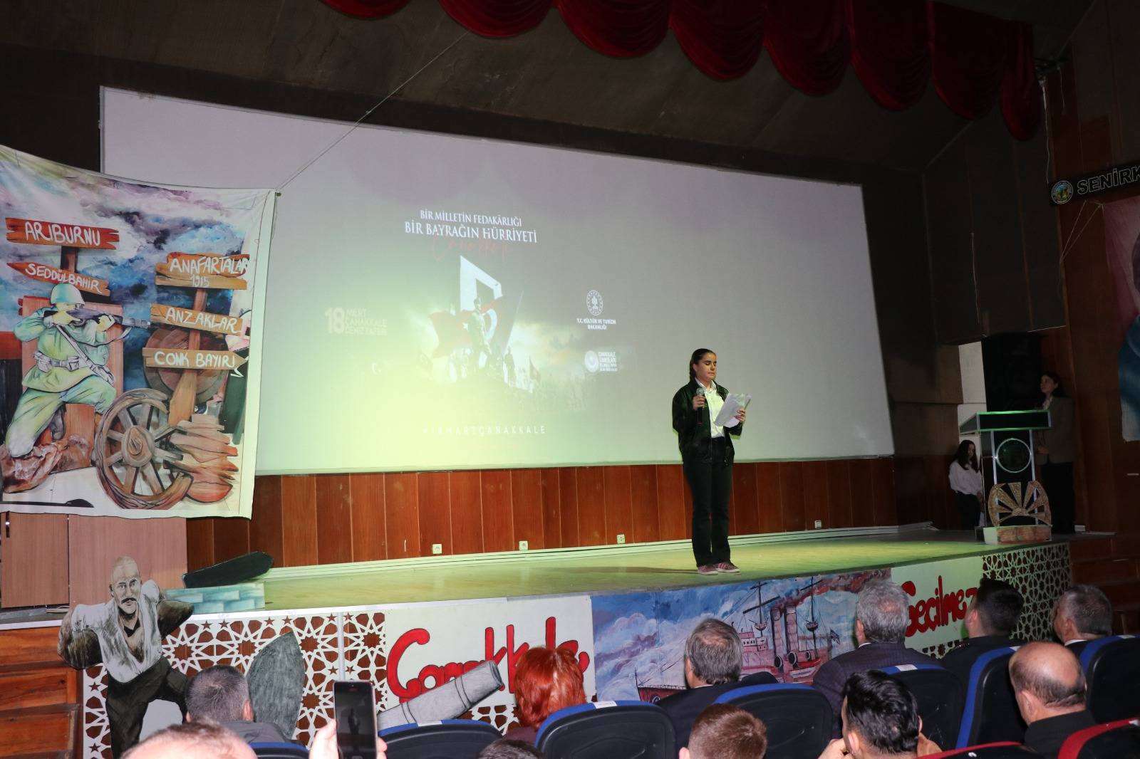 18 Mart Şehitleri Anma Günü ve Çanakkale Deniz Zaferi’nin yıl dönümü dolayısıyla Yükseliş Ortaokulu tarafından hazırlanan program, Belediyemiz Sinema Salonu’nda gerçekleştirildi. Düzenlenen programa Kaymakamımız Sayın Seda GÜR, Belediye Başkanımız Sayın Hüseyin BAYKAL ve ilçe protokolü katıldı. Programda öğrenciler tarafından şiirler okundu ve çeşitli gösteriler sahnelendi. Başta Gazi Mustafa Kemal Atatürk olmak üzere, Çanakkale’de destan yazan tüm şehitlerimizi rahmet, minnet ve saygıyla anıyor; bu eşsiz zaferin yıl dönümünü gururla yad ediyoruz.