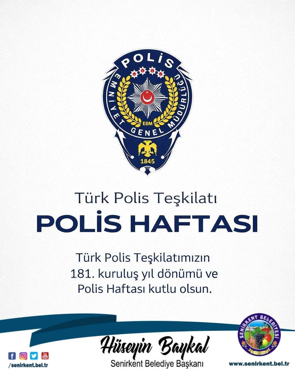 Türk Polis Teşkilatı’nın kuruluş yıl dönümü ve Polis Haftası’nı en içten dileklerimizle kutluyoruz. Milletimizin huzur ve güvenliği için fedakârca, gece gündüz demeden görev yapan tüm emniyet mensuplarımıza şükranlarımızı sunuyoruz. Bu anlamlı vesileyle , görevleri uğruna canlarını feda eden aziz şehitlerimizi rahmetle; kahraman gazilerimizi ise saygı ve minnetle anıyoruz.